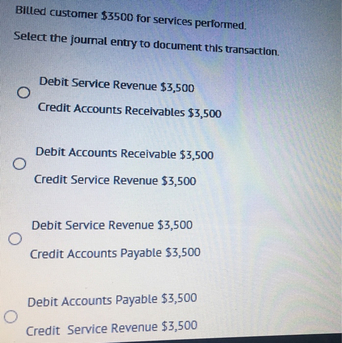 Activity 8 Expense Debits And Credits from imgv2-1-f.scribdassets.com The clients were billed for the agreed upon amount of $900. Question 19 4 / 4 points billed customer $3500 for services performed prepare the journal entry to document this transaction. Sixty percent was paid in cash, and the remaining customers asked to be billed. The contract requires the customer to advance $500 on february 1, 2019, and the entity promises to transfer a product to the customer on march 1, 2019. Prepare general journal entries for the following transactions of a business called pose for pics in 2016: Hashim khan, the owner, invested rs. Customers paid $43,000 for services rendered on january 8 leaving a balance of $246,000. Here is the journal entry for a payment on account: